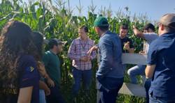 Eles aprenderam a analisar pragas e doenças em culturas de milho e soja e detectaram uma série de lagartas e percevejos na plantação. Durante a aula, o professor também ensinou o passo a passo da instalação correta das culturas. |